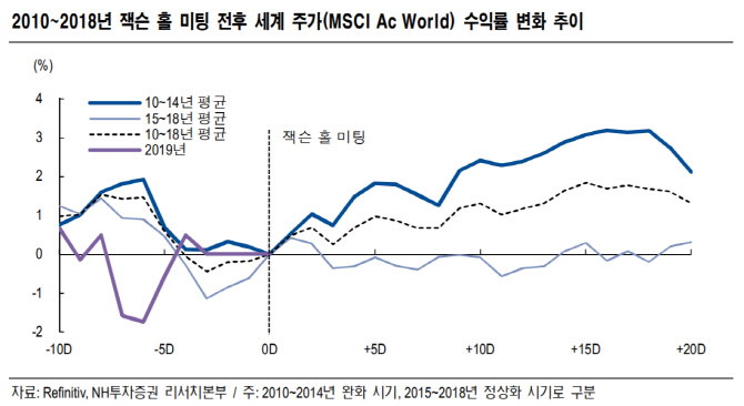 과거에도 잭슨 홀 미팅 전후 세계 주식시장 주가가 우호적으로 나타났다.